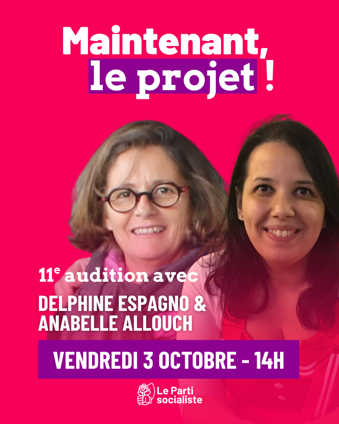 Ce vendredi 3 octobre à 14h, le Parti socialiste auditionnera Delphine Espagno et Anabelle Allouch. Un évènement à ne pas manquer !